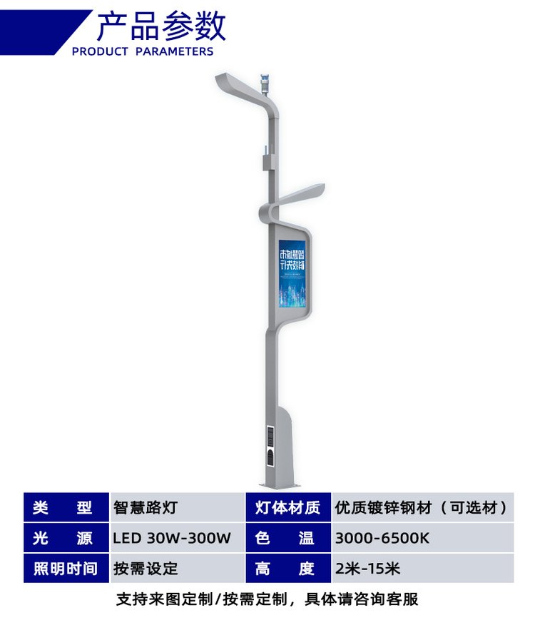 高低臂智慧路灯8米12米13米15米显示屏摄像头一体双臂路灯杆