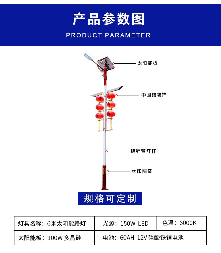 太阳能路灯6米5米新农村道路灯公园景区大功率灯笼款景观灯